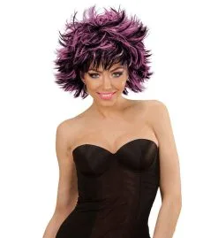 Punk Chick Pruik, Steamy Zwart / Paars