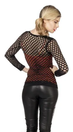 Spannend Netshirt Lange Mouw Zwart Vrouw